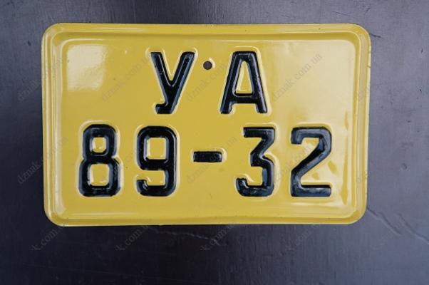 Старый, советский номер на мотоцикл, желтого цвета, изготавливавшийся с 1953 по 1958 года. Номер имеет обратно выдавленную рамку окрашен в желтый цвет. В то время еще не было стандартов, предписывающих иметь номеру - светоотражающую поверхность и номер не отражает свет.