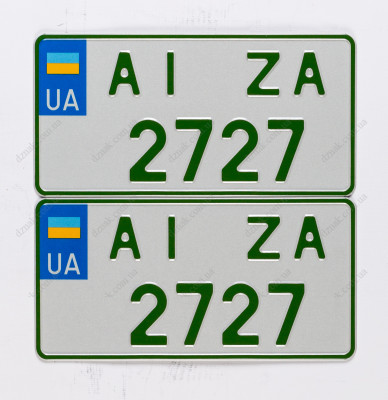 Дубликаты номеров для электротрансопрта и "электричек". Имеют свтеотражающую поверхность и покрашенны зеленой краской. Владельцы таких автомобилей облагаются меньшим налогом.